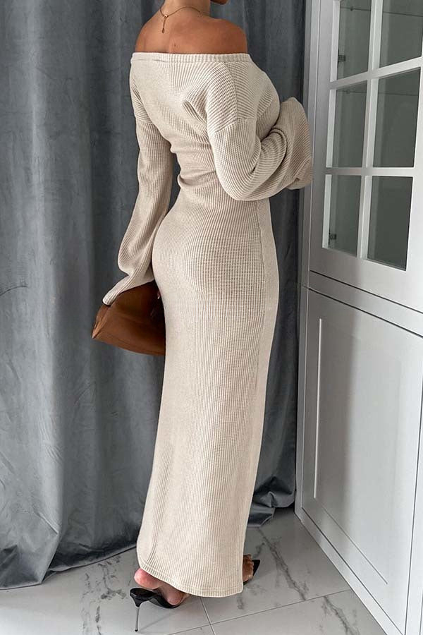 Ahion Knitted V Neck Long Sleeved Maxi Dress