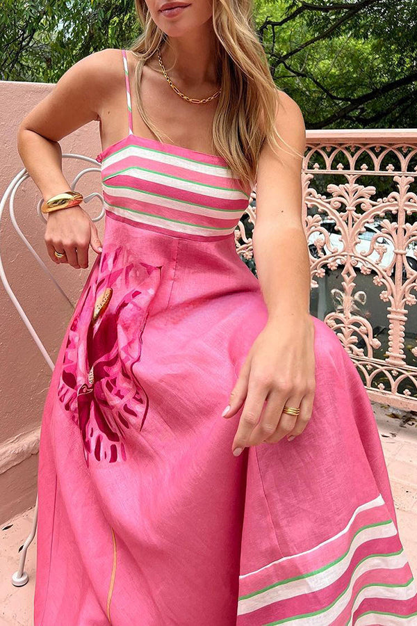 Aston Contrast Floral Print Striped Pocket Maxi Dress