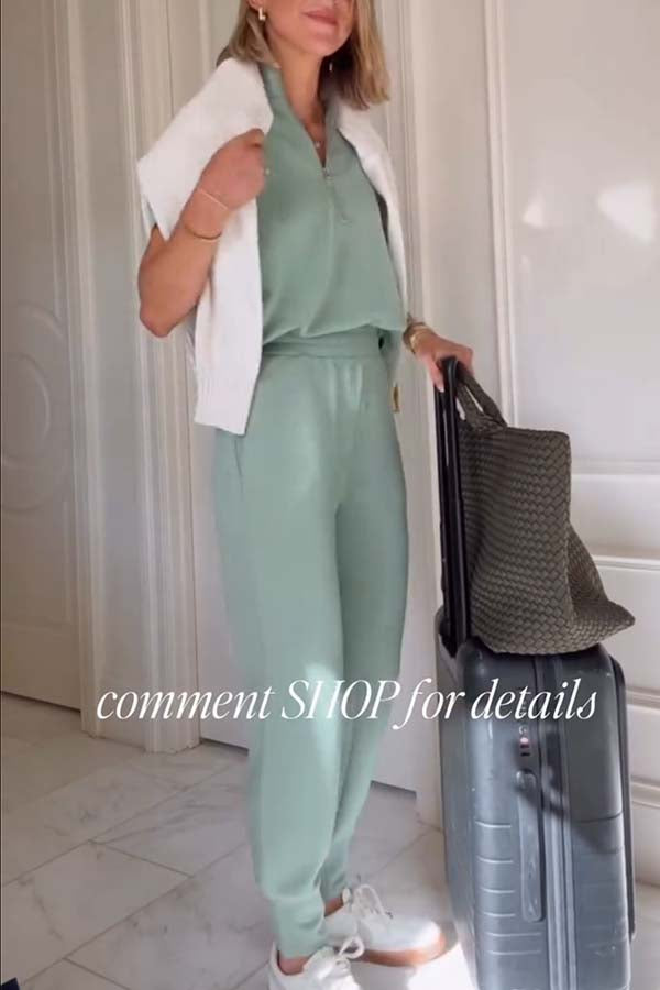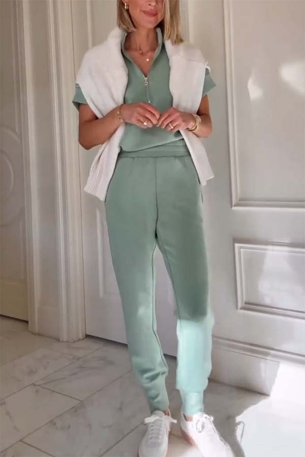Sheridan Half-Zip Neck Short Sleeve Sweatshirt and Elastic Waist Pocket Jogger Set