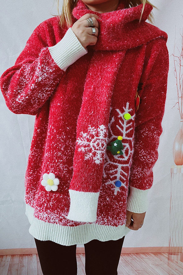 Christmas Pattern Knitted Round Tie Scarf Long Sleeve Sweater