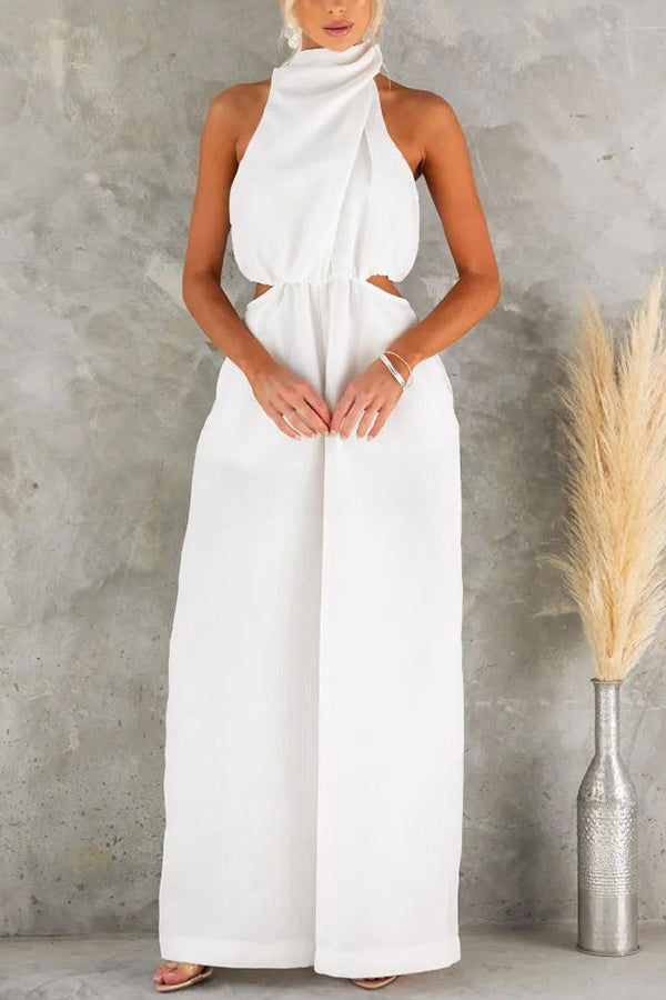 Elyssa High Neck Cutout Elastic Waist Pocketed Wide Leg Jumpsuit