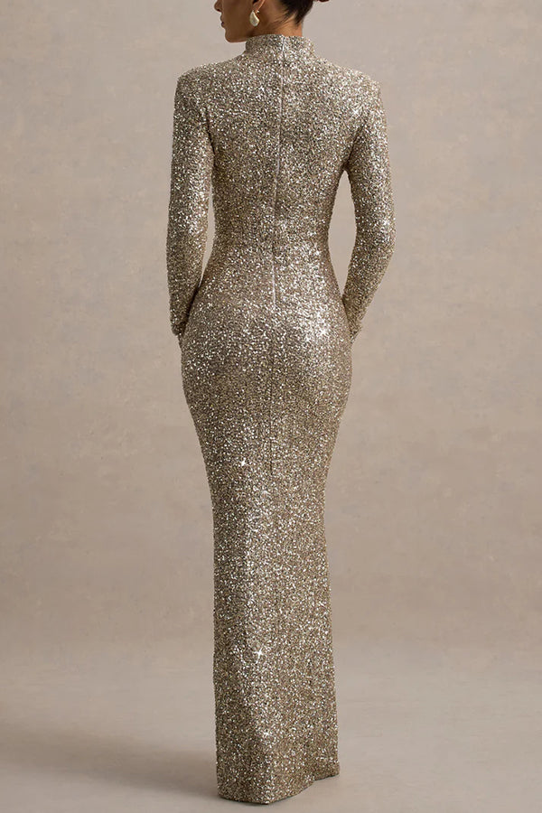 Galaxy Premium Sequin Turtle Neck Long Sleeve Maxi Dress