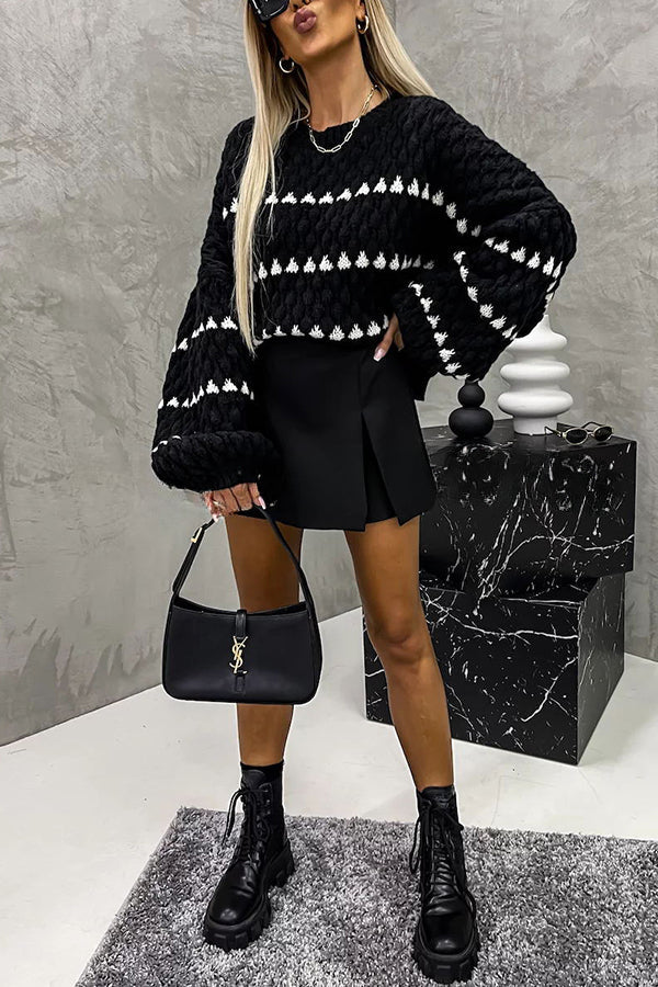 Meggie Contrast Striped Pullover Long Sleeve Sweater