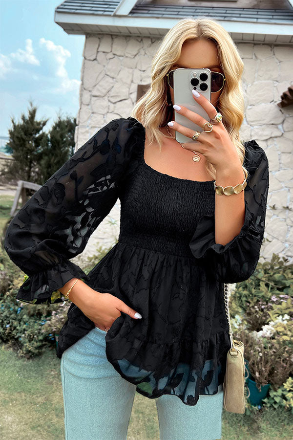 Oh Daisy Embroidered Smocked Tiered Blouse