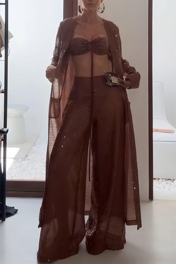Seaside Whisper Sequin Tie-up Elastic Crop Tank and High Rise Zipper Loose Pants Set