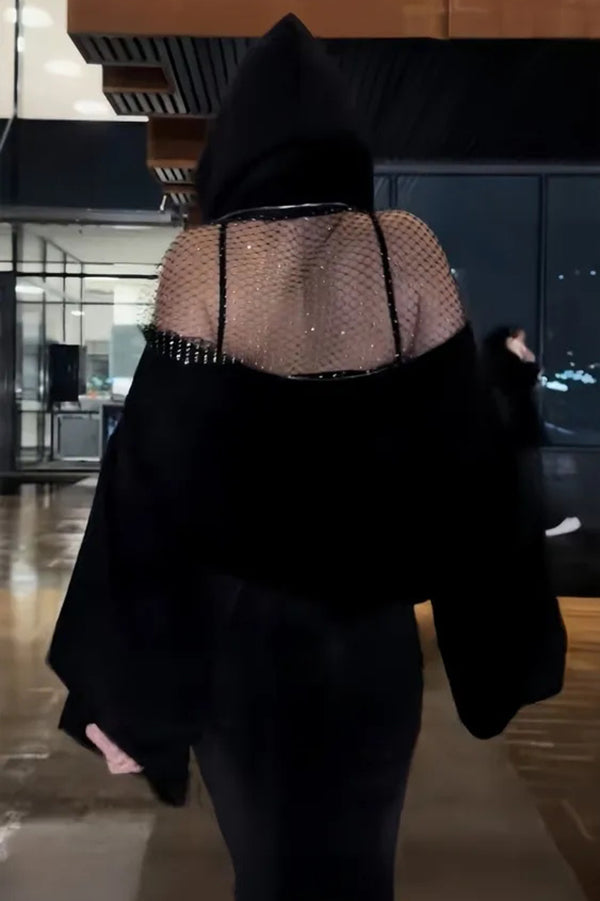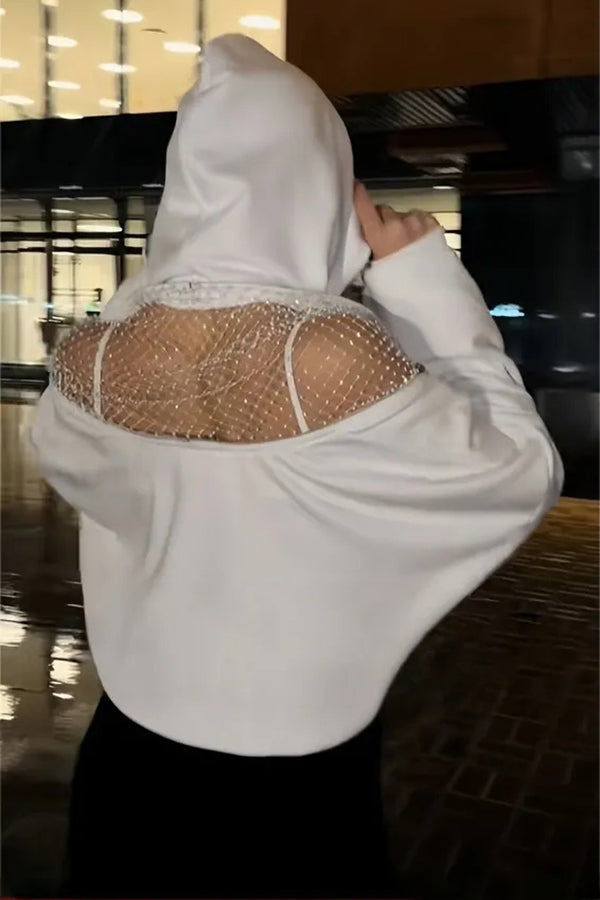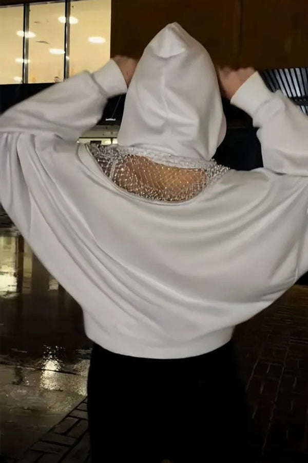 Solid Color Backless Cutout Loose Hooded Casual Sports Sweatshirt