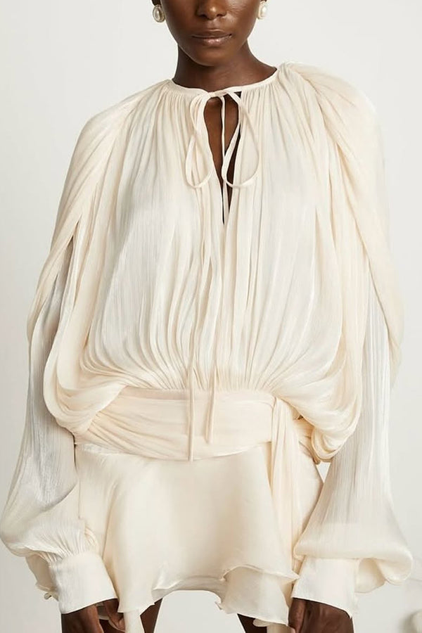 Solid Color Long-sleeved Belted Asymmetrical Mini Dress and Elastic Waist Casual Shorts Set